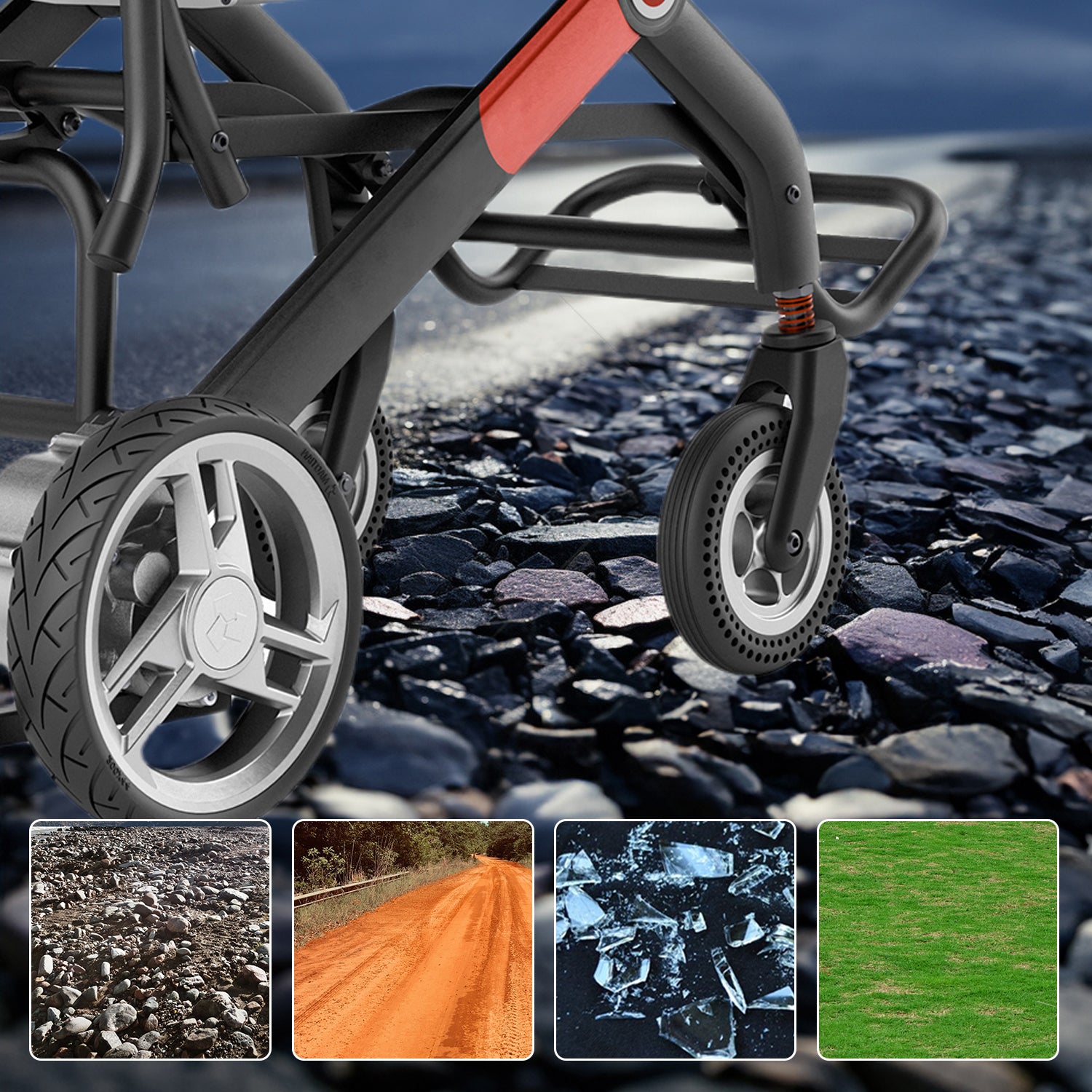 | Vorderräder | 14 cm Wabenreifen (pannensicher) |